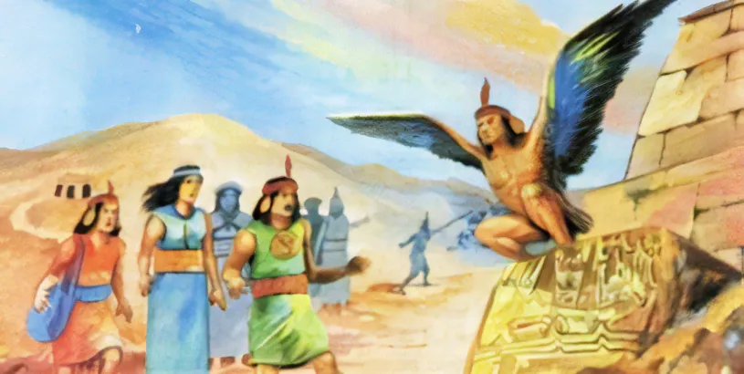 During the journey, Ayar Auca saw that wings and grew on him. On the orders of his brother Ayar Manco, he flew towards the valley. When he arrived at a rock in Acamama (The previous name of the lands of Cusco), he too was turned into stone.